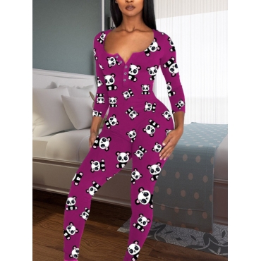 Lovely Casual Cartoon Print Button Design Purple Sleepwear