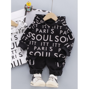 Lovely Casual Letter Print Pocket Design Black Boy Two Piece Pants Set