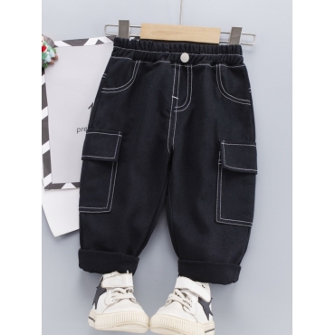 Lovely Casual Mid Waist Pocket Design Patchwork Black Boy Pants