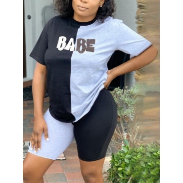 Lovely Casual Letter Print Color-lump Grey Two Piece Shorts Set