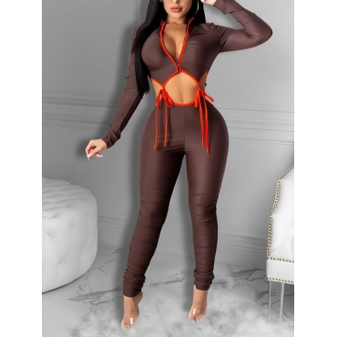 Lovely Sexy Bandage Hollow-out Design Brown Two Piece Pants Set