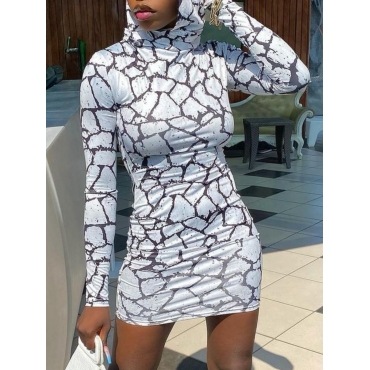 Lovely Sweet Hooded Collar Geometric Print White Mini Dress(No-positioning Printing)