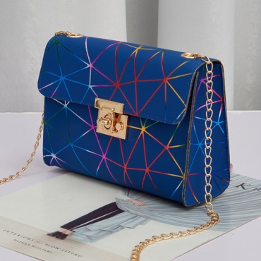 Lovely Casual Geometric Print Metal Decoration Blue Crossbody Bag