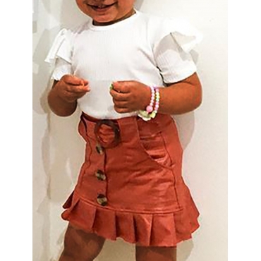 Lovely Casual Flounce Button Design White Girl Two Piece Skirt Set