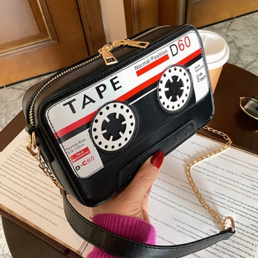 Lovely Casual Geometric Print Metal Decoration Black Crossbody Bag