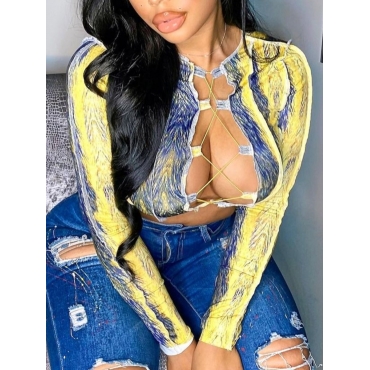 Lovely Sexy Bandage Hollow-out Design Yellow T-shirt