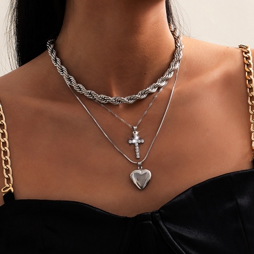 Lovely Chic Heart-shaped Silver Multilayer Necklace