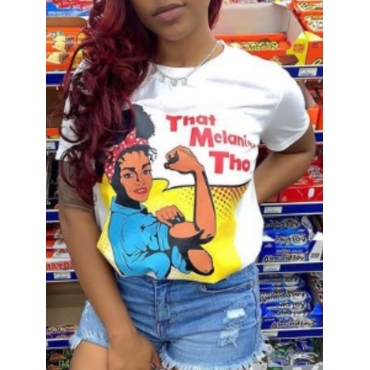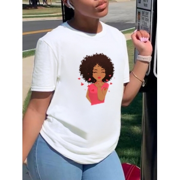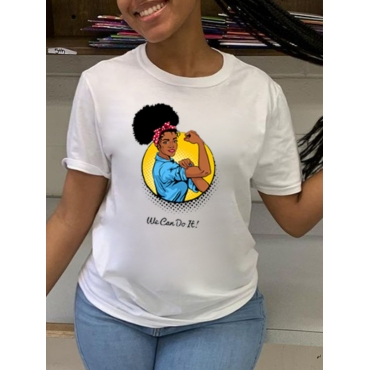 Lovely Casual O Neck Portrait Print White Plus Size T-shirt