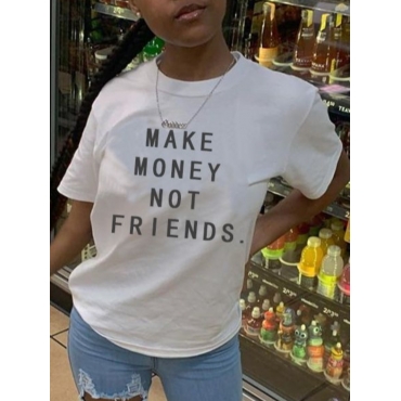 Lovely Casual O Neck Letter Graffiti Print White T-shirt