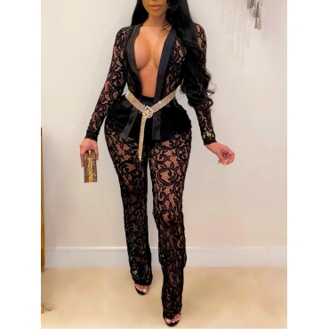 Lovely Sexy Mesh Patchwork Black Two Piece Pants Set (Without Belt)