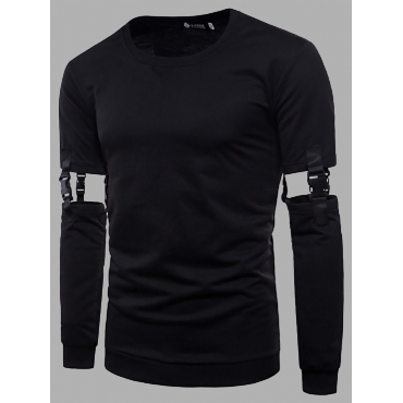 Lovely Trendy School Bag Buckle Hollow-out Black Men T-shirt