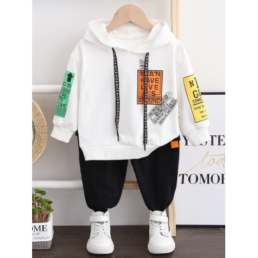 Lovely Sportswear Hooded Collar Letter Print Patchwork White Boy Two Piece Pants Set