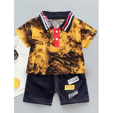 Lovely Stylish POLO Collar Tie Dye Yellow Boy Two Piece Shorts Set