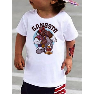 Lovely Casual O Neck Cartoon Letter Print White Boy T-shirt
