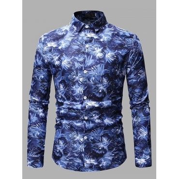 Lovely Formal Floral Print Patchwork Blue Men Shirt