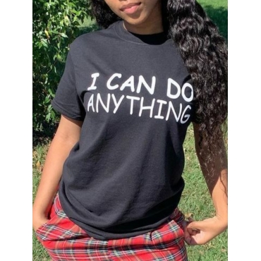 Lovely Casual O Neck Letter Print Black T-shirt