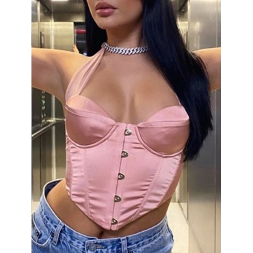 Lovely Sexy Button Design Asymmetrical Pink Camisole