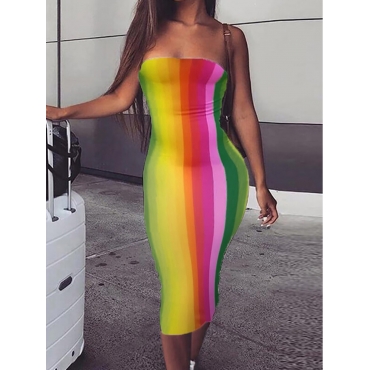 Lovely Street Off The Shoulder Color-lump Patchwork Muiticolor Mid Calf Dress