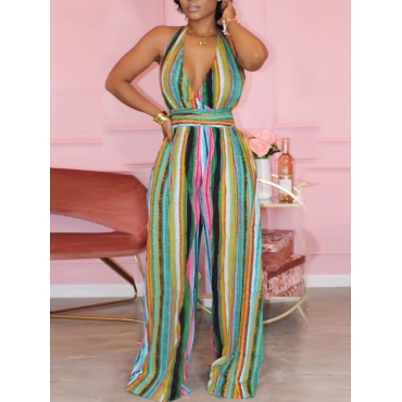 Lovely Casual Backless Striped Print Multicolor One-piece Jumpsuit