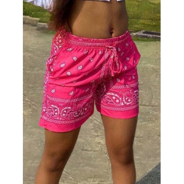Lovely Casual Mid Waist Print Drawstring Pink Shorts