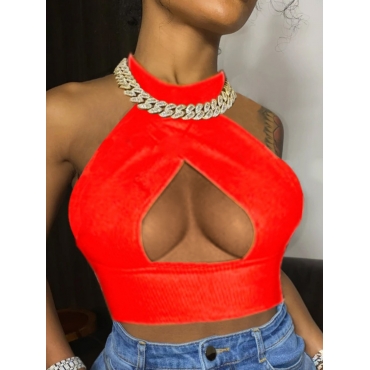 Lovely Sexy Off The Shoulder Hollow-out Red T-shirt