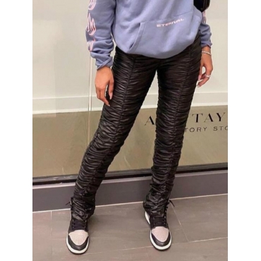 Lovely Chic Mid Waist Bandage Hollow-out Design Black Pants