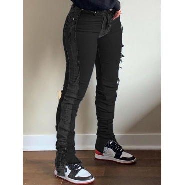 Lovely Casual Mid Waist Patchwork Black Jeans