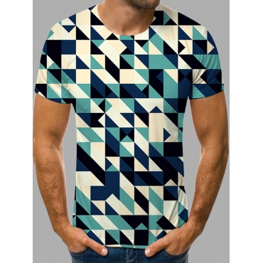 Lovely Casual O Neck Geometric Print Blue Men T-shirt