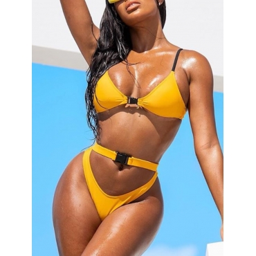 Lovely Casual School Bag Buckle Hollow-out Yellow Two-piece Swimsuit