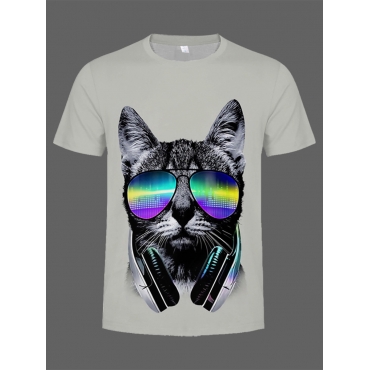 Lovely Casual O Neck Animal Print Grey Men T-shirt