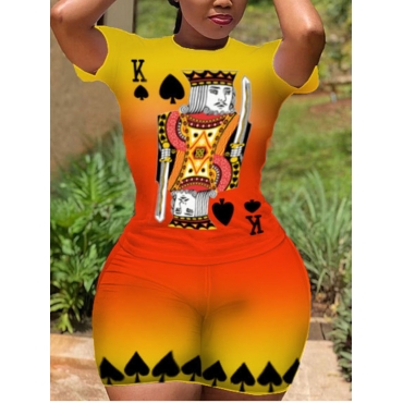 Lovely Trendy Gradient Card Print Patchwork Croci Plus Size Two-piece Shorts Set
