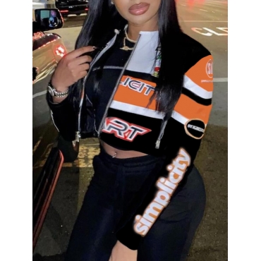 Lovely Street Letter Print Color-lump Polyester Black Coat