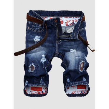 Lovely Casual Mid Waist Print Gradient Blue Men Denim Shorts