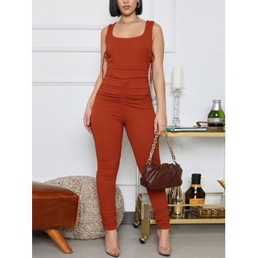 Lovely Casual U Neck Bandage Hollow-out Design Brown One-piece Jumpsuit