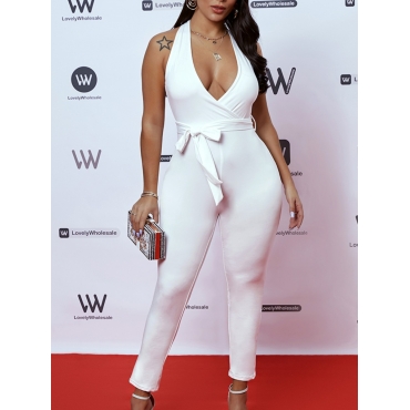 Lovely Sweet Cross-over Lace-up White One-piece Jumpsuit