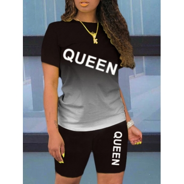 Lovely Casual Gradient Letter Print Black Two Piece Shorts Set