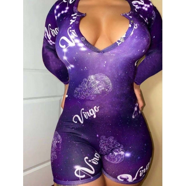 Lovely Casual Letter Print Gradient Purple Plus Size One-piece Romper