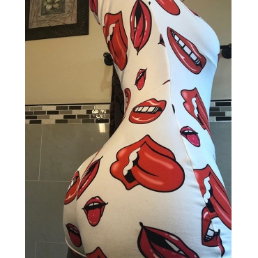 Lovely Casual Lip Print White Plus Size One-piece Romper