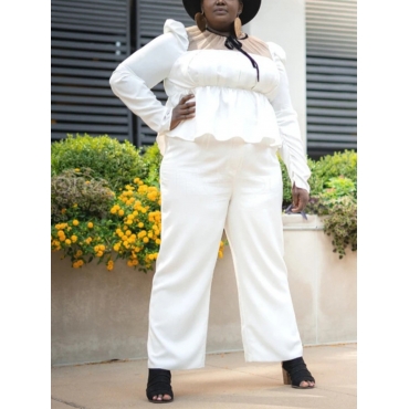 Lovely Casual Ruffle Design Flounce White Plus Size Two-piece Pants Set