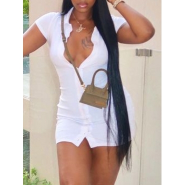 Lovely Casual Turndown Collar Skinny White Mini Dress