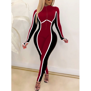 Lovely Casual Color-lump Patchwork Skinny Red One-piece Jumpsuit