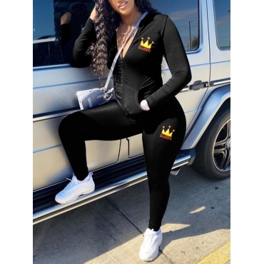 Lovely Casual Print Pocket Design Black Two Piece Pants Set
