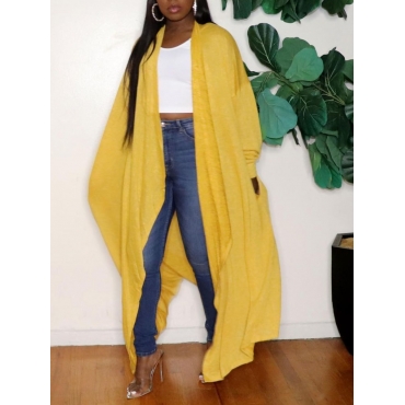 Lovely Casual Dropped Shoulder Pocket Design Yellow Trench Coat