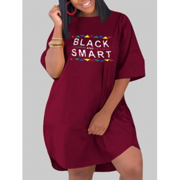 Lovely Casual Letter Geometric Print Wine Red Knee Length Plus Size Dress