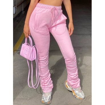 Lovely Casual Drawstring Fold Design Pink Plus Size Pants