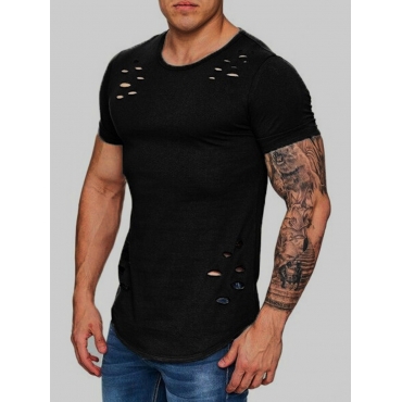 Lovely Casual O Neck Broken Holes Black Men T-shirt