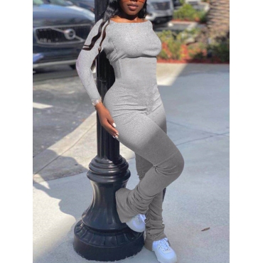 Lovely Casual Fold Design Grey One-piece Jumpsuit