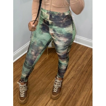 Lovely Street High-waisted Tie-dye Green Pants