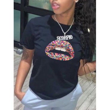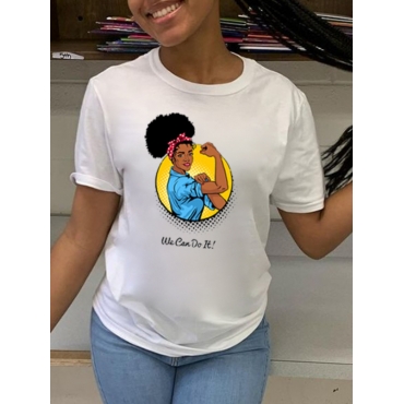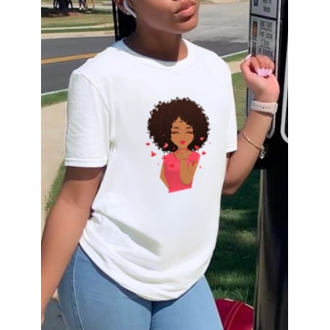Lovely Casual O Neck Cartoon Letter Print White T-shirt