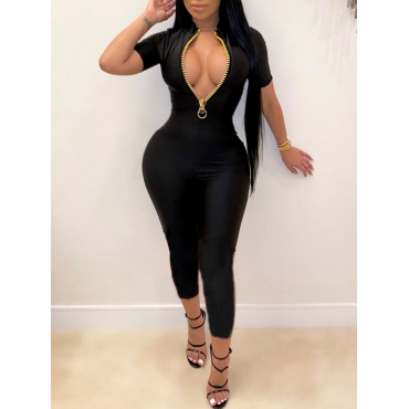 Lovely Sexy Zipper Design Skinny Black One-piece Jumpsuit